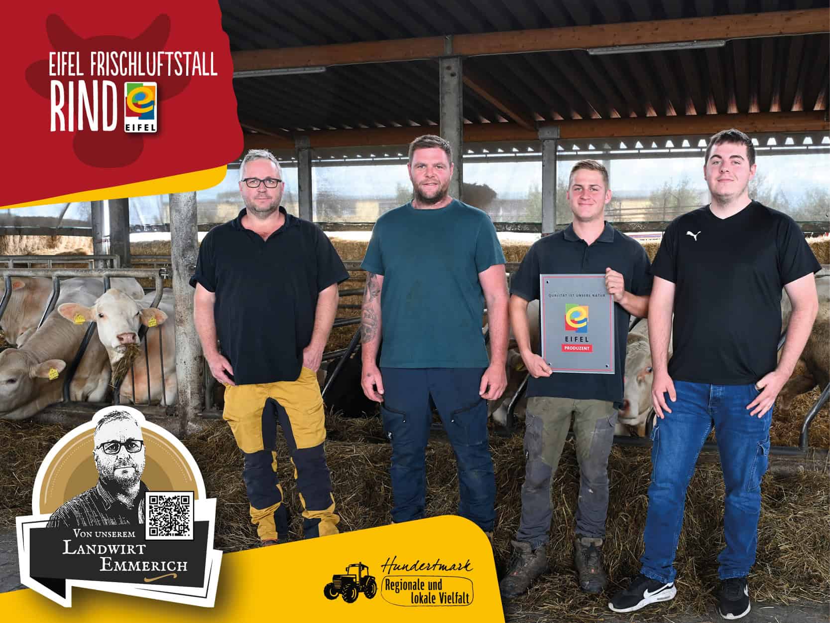 - Haltungsform 3 bei der Milchviehhaltung (QMilch++ Zertifizierung) und bei der Fleischwirtschaft (Regionalmarke EIFEL Frischluftstall Rind Zertifizierung)